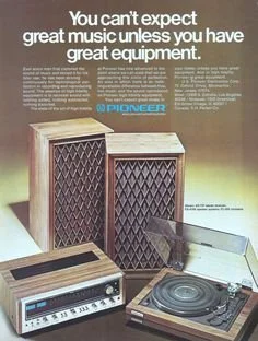 Our group pulled visual inspiration from '70s home speakers. We love the wooden patterns on many of the Pioneer, Kenwood, and Sony speaker systems. A model that particularly stuck out to us was the Pioneer Model CS-901A (1974)